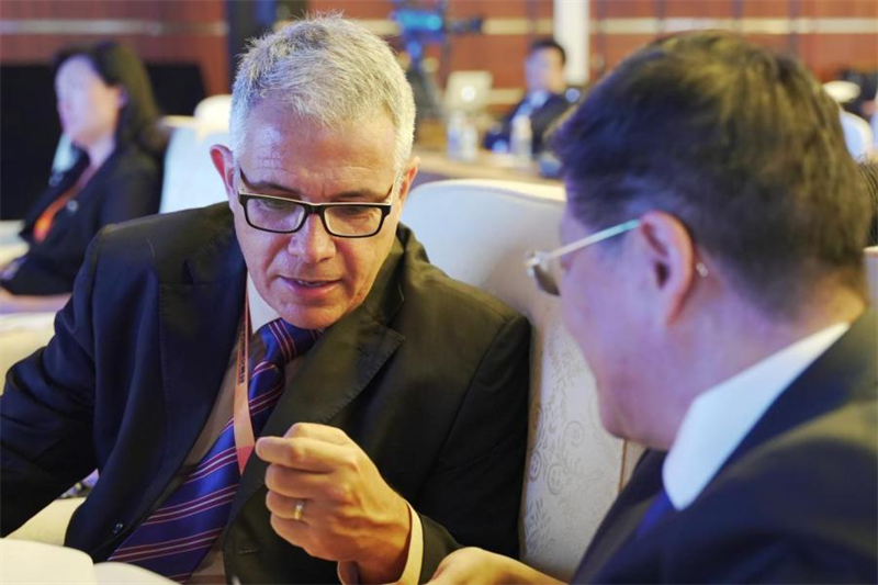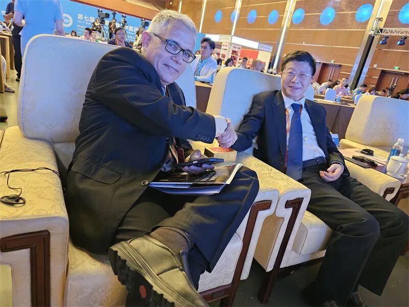 烟台张裕集团党委副书记、总经理兼烟台中亚至宝药业董事长冷斌 这是冷斌连续两届受邀参会并作主题分享。本届会议期间,澳门特别行政区药物监督局负责人,印尼、古巴等“一带一路”沿线国家的卫生部门负责人或驻华使节,先后与冷斌交流,探讨加深合作。