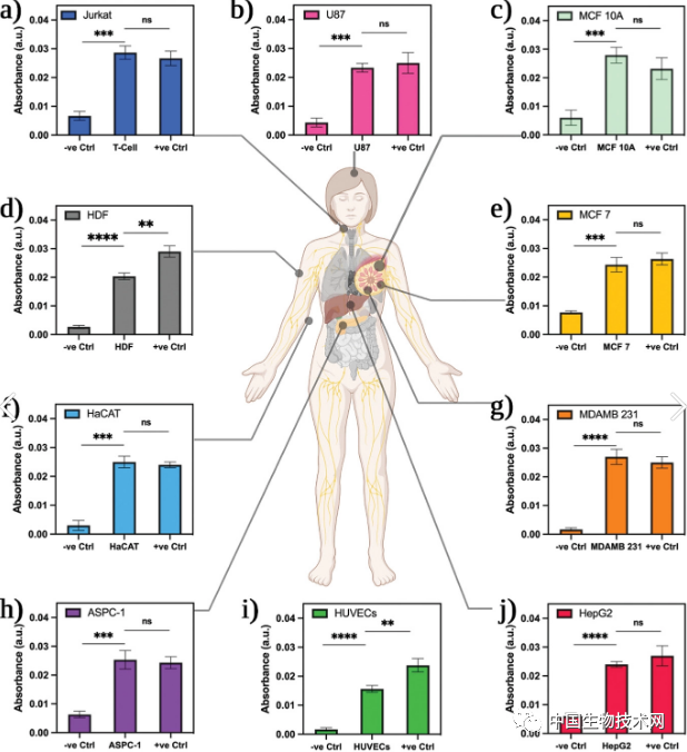 ACSM-PCL具有高光学透明度和机械性能,以及良好的生物相容性和对外泌体的敏感性,并采用金纳米颗粒比色法来可视化捕获的外泌体。ACSM-PCL可以在pH值为6.5-7.4(类似于人泪液的pH值)的范围内检测外泌体,并且在牛血清白蛋白溶液中具有很强的回收率。该团队还通过使用替代方法促进和优化了ABSM-CL的制备。在为镜片制造微型腔室(微室)时,研究人员使用了直接激光切割和雕刻的方法,而不是传统的铸造成型来保持微室和透镜的结构。此外,他们还优化了将捕获抗体与ACSM-PCL微室结合的程序,并将不同的(阳性对照)检测抗体与金纳米颗粒结合,金纳米颗粒可以通过光谱进行可视化。这两种抗体对外泌体上发现的两种不同的表面标志物都具有特异性。在最初的验证实验中,研究人员使用ACSM-PCL对来自10个不同组织和癌细胞系的上清液中分泌的外泌体进行了测试。与阴性对照相比,在所有检测样本中观察到的光谱偏移验证了ACSM-PCL捕获和检测外泌体的能力。![]()