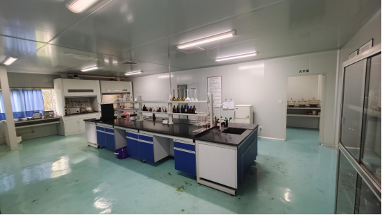 化妆品车间:化妆品车间面积约480平方米。设有称量、前处理、乳化、配剂、灌装、内外包装间等。可满足公司化妆品的生产需求。 仓库:仓库面积约1200㎡,其中包括阴凉库、不合格品库、药材库、净药材库、成品库、外包材库、内包材库,功能齐备,并有足够的储存空间。物品划区域存放,物品进出仓库有明显标志,对有特殊要求的物品单独存放、专人管理,易燃、易爆、毒性物品远离生产区域存放并设专人管理。 实验室:实验室面积约480平方米。设有QC办公室、理化室、微生物室、标本室、留样观察室、精密仪器室、天平室、高温室等。精密仪器有防震动、防静电、防潮湿等防外界影响的设施及辅助设备。其地面为耐磨地砖(微生物限度检测室为自流平),部分天花为铝塑扣板,复合彩钢板隔断。微生物限度检测室为10000级洁净区。