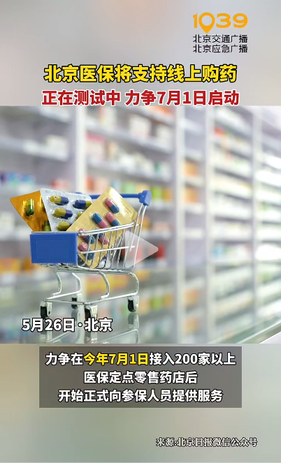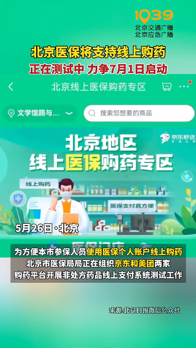 5月26日,北京市医保局发布消息,为进一步满足民众对便捷医疗服务的需求,方便本市参保人员使用医保个人账户线上购药,该局正在组织京东和美团两家购药平台开展非处方药品线上支付系统测试工作;力争在2024年7月1日接入200家以上医保定点零售药店后,开始正式向参保人员提供服务。
