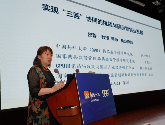 中国药科大学药品监管科学研究院执行院长邵蓉教授以《实现“三医”协同的挑战与药品零售业发展》为题,分析了当下“三医联动”所面临的主要问题,以及OTC药品在零售药店患者购买、药店销售、医保支付诸多环节存在的现实问题与矛盾,就完如何善定点零售药店门诊统筹支付政策提出了建议。