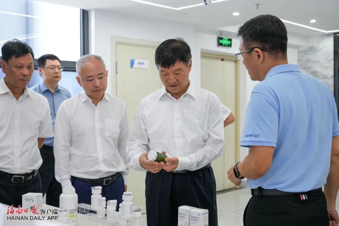 7月3日,海南省委副书记、省长刘小明一行莅临华益泰康药业股份有限公司就加快新质生产力重要实践地建设、推进上市公司高质量发展工作展开调研。海南省副省长陈怀宇,省政府党组成员、秘书长符宣朝,海口市委副书记、市长丁晖,中国人民银行海南省分行行长方昕,国家金融监管总局海南监管局局长王吴庆,中国证监会海南监管局局长李钢,省委金融办副主任管毅,省政府研究室主任霍沛军;华益泰康药业董事长诸弘刚博士陪同调研。