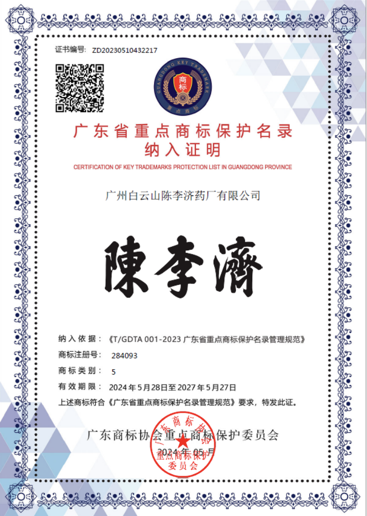 日前,广东商标协会公布2023年度广东重点商标保护名录纳入结果。其中,“陈李济”商标成功纳入该保护名录。这一殊荣不仅标志着陈李济在品牌建设方面取得了新的突破,也进一步巩固了陈李济在市场中的领先地位和品牌影响力。 ![]() 广东省重点商标保护名录是广东商标协会联合相关省级行业协会、专业协会及市区商标协会依据团体标准《广东省重点商标保护名录管理规范》规定的纳入程序开展工作的,已受到司法、行政机关、社会各界的高度认可。 广东省重点商标保护名录在商标维权司法实践中的认可及重视程度也在不断提高。最高人民法院及广东省高级人民法院已给予明确回复,入选重点商标保护名录可作为法院认定该商标具有相应知名度的参考依据,可适当减轻权利人对商标知名度的举证责任,为省重点商标的维权提供了强有力的支撑。 作为世界500强广药集团旗下全资子公司,陈李济至今已有424年历史,是我国中药行业现存最老的老字号,国家认定的“中华老字号”、吉尼斯世界纪录认证的“全球最长寿药厂”,“陈李济”商标荣获“中国驰名商标”。陈李济于2022年被认定为国家知识产权示范企业,于2017年被认定为国家知识产权优势企业,于2008年被认定为省知识产权优势企业。 此次申报的“陈李济”商标成功通过广东商标协会的评选,是相关权威机构对陈李济品牌的认可和鼓励,有利于提升陈李济在市场上的竞争力和影响力,有利于陈李济的知识产权保护体系的进一步完善,促进企业高质量发展。陈李济将继续加强品牌建设和知识产权保护工作,提升品牌影响力和市场竞争力,为长远发展奠定坚实基础。