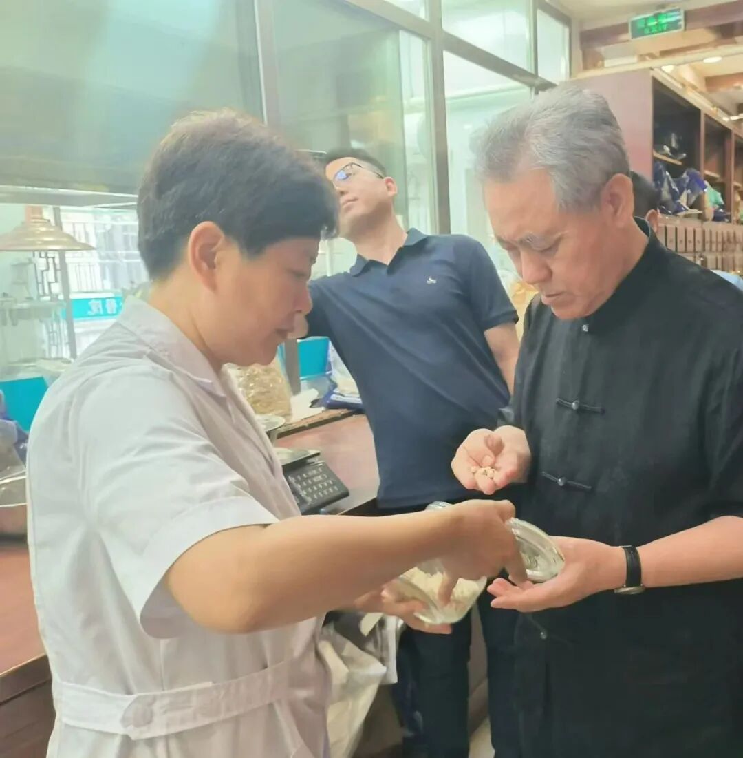 在中药房,陈教授仔细查看了常用药材的饮片,对其品规的齐全、等级的优良以及质量的上乘表示了高度认可,充分展现了达仁堂医院在药材管理上的严谨与专业。