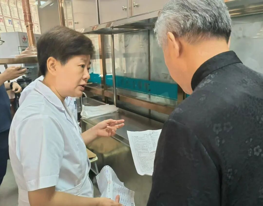 陈教授一行详细考察了达仁堂医院的各个科室,包括中药房、中西成药房、煎药室、中医诊室、治疗室及名医堂诊室等关键区域,对医院的整体布局与设施给予了高度评价。