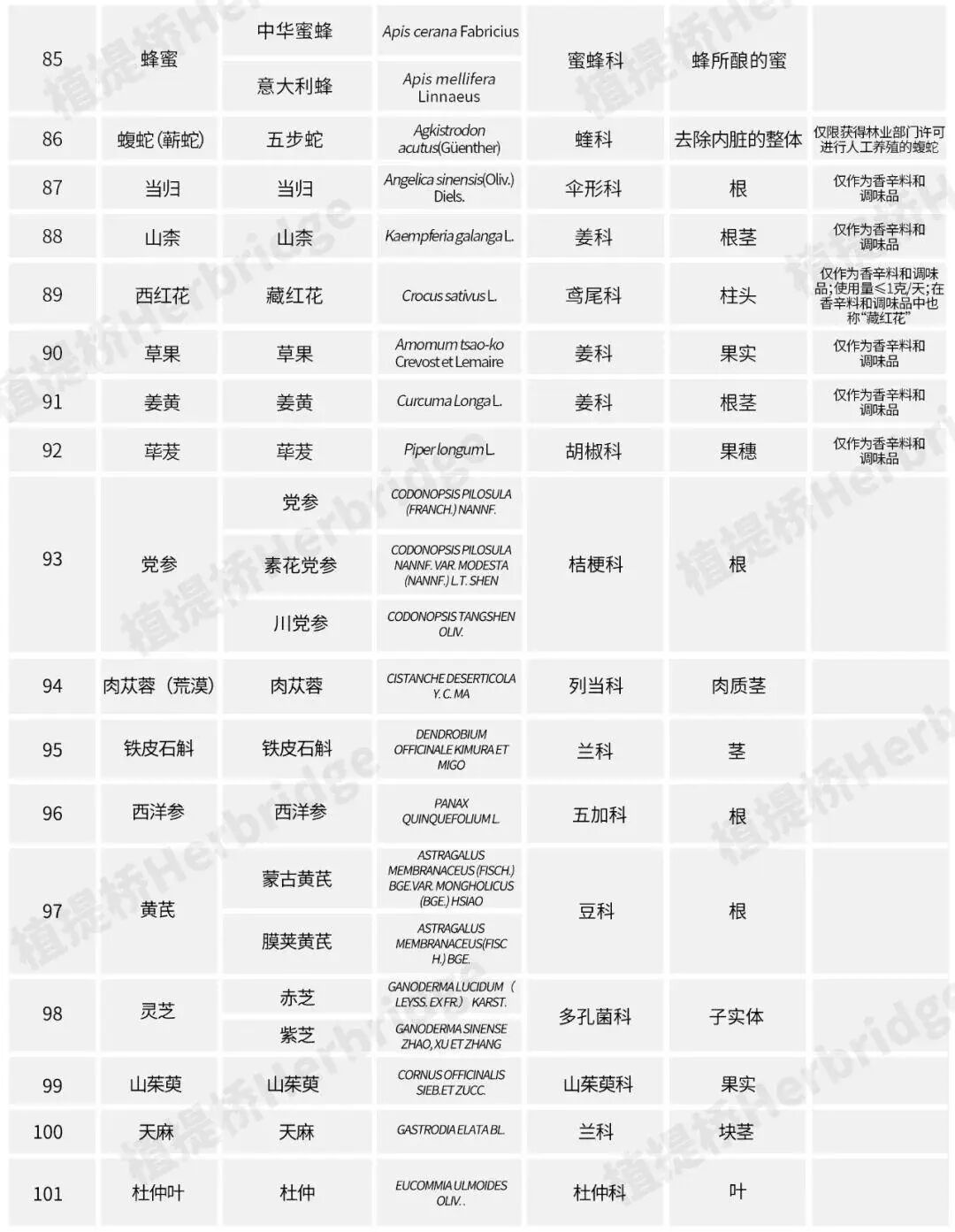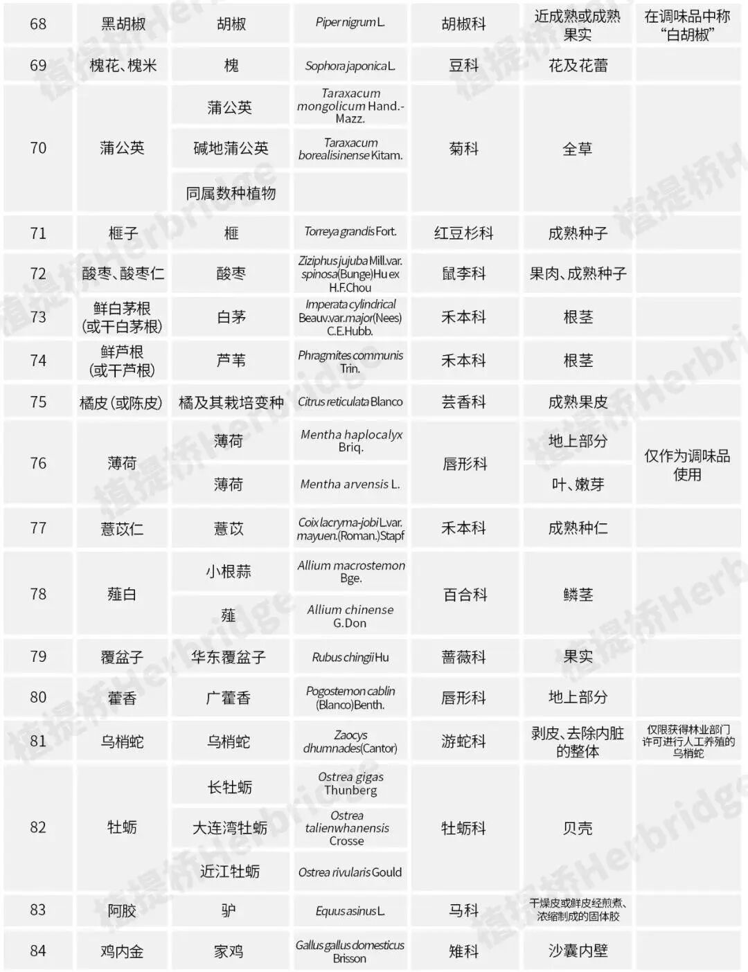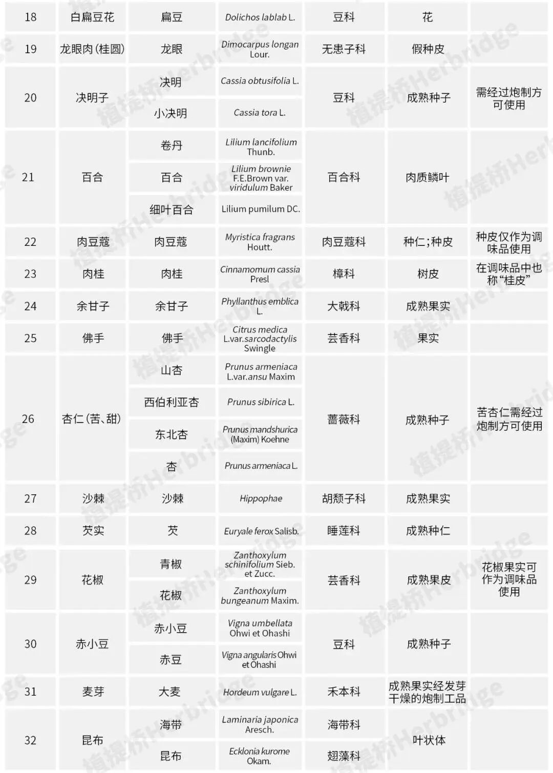 备注:列入按照传统既是食品又是中药材的物质目录的物质,作为食品生产经营,应当符合《食品安全法》的规定。