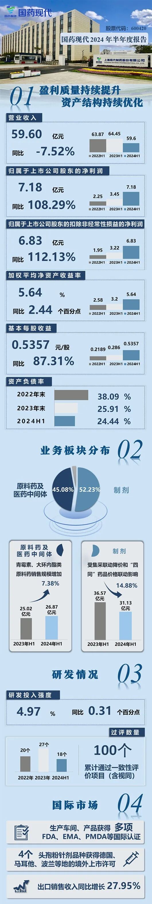 国药现代2024年半年度报告:归母净利润同比增长108.29%,盈利质量持续提升