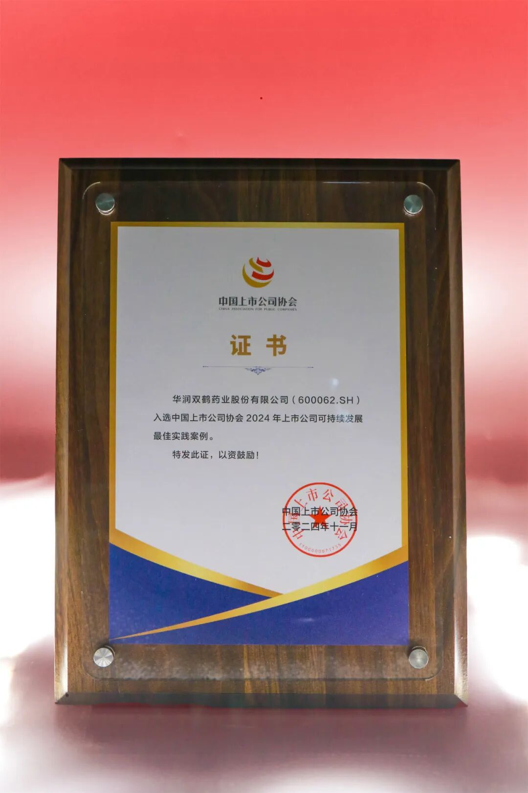 华润双鹤董事会建设、可持续发展荣膺中上协双重最佳实践案例