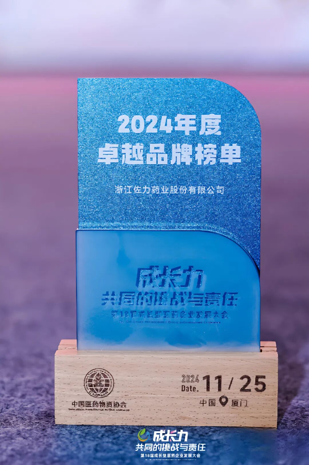 2024年11月25日,在鹭岛厦门,第18届成长型医药企业发展大会拉开帷幕,浙江佐力药业股份有限公司以卓越的成就和深远的行业影响力,斩获多项奖项。 佐力药业自成立以来,始终坚守“辅佐人类身体健康,致力祖国医药发展”的企业使命,以匠心精神打造每一款产品。公司凭借独特的药用真菌生物发酵技术,成功研发了多款创新中药药品,其中乌灵胶囊更是凭借其疗效和卓越的品质,赢得了市场的广泛认可和消费者的信赖。在此次大会上,佐力药业荣获“2024年度卓越品牌榜单”及“2024年度匠心成就榜单”两项大奖,这不仅是对佐力药业品牌影响力的认可,更是对其在匠心精神和卓越品质方面的肯定。佐力药业深知,品牌是企业发展的灵魂,而匠心则是铸就卓越品牌的基石。公司始终将产品质量放在首位,以匠心精神打造每一款产品,赢得了市场的广泛赞誉。 ![]() ![]() 汪涛先生:2024年度风云人物榜单 在大会上,浙江佐力药业股份有限公司总经理汪涛先生被评为“2024年度风云人物榜单”,作为佐力药业的领航者,始终站在行业的前沿,以其敏锐的市场洞察力和卓越的领导力,引领佐力药业在医药行业的激烈竞争中稳步前行。其远见卓识和坚定信念,更为整个医药行业树立了榜样。 ![]() 佐力药业在大会上的辉煌时刻,这不仅是对佐力药业过去努力的肯定,更是对未来发展的期许。面对未来,佐力药业将继续坚持“一体两翼”的发展战略,深耕中药全产业链,积极探索现代生物发酵技术,致力于成为国内大型药用真菌制药领域的领头雁。推动中医药的传承与创新发展,为人类的心身健康作出更大的贡献。 乌灵胶囊是国家一类新药,国家中药保护品种,国家秘密技术产品,国家医保甲类产品,国家基药目录产品,2019年首批“浙产名药”,2024年首批“浙产中药”。临床应用二十余年,得到了广大临床医生的广泛认可,截至目前获得了76个临床路径、指南及专家共识的推荐,连续多年始终是医院安神类中成药排名第一。 同时,佐力药业也正在积极推进和全国连锁大药房、电商平台的战略合作,促进患者购药的可及性,加强消费者的健康教育,并利用自主开发的国际通用量表让消费者进行自我测评,助力科学又精准地筛查出有情绪、睡眠、健忘问题的患者,促进患者的心理健康和维护认知功能,起到心身同治的效果,打造脑效能健康管理的新模式。