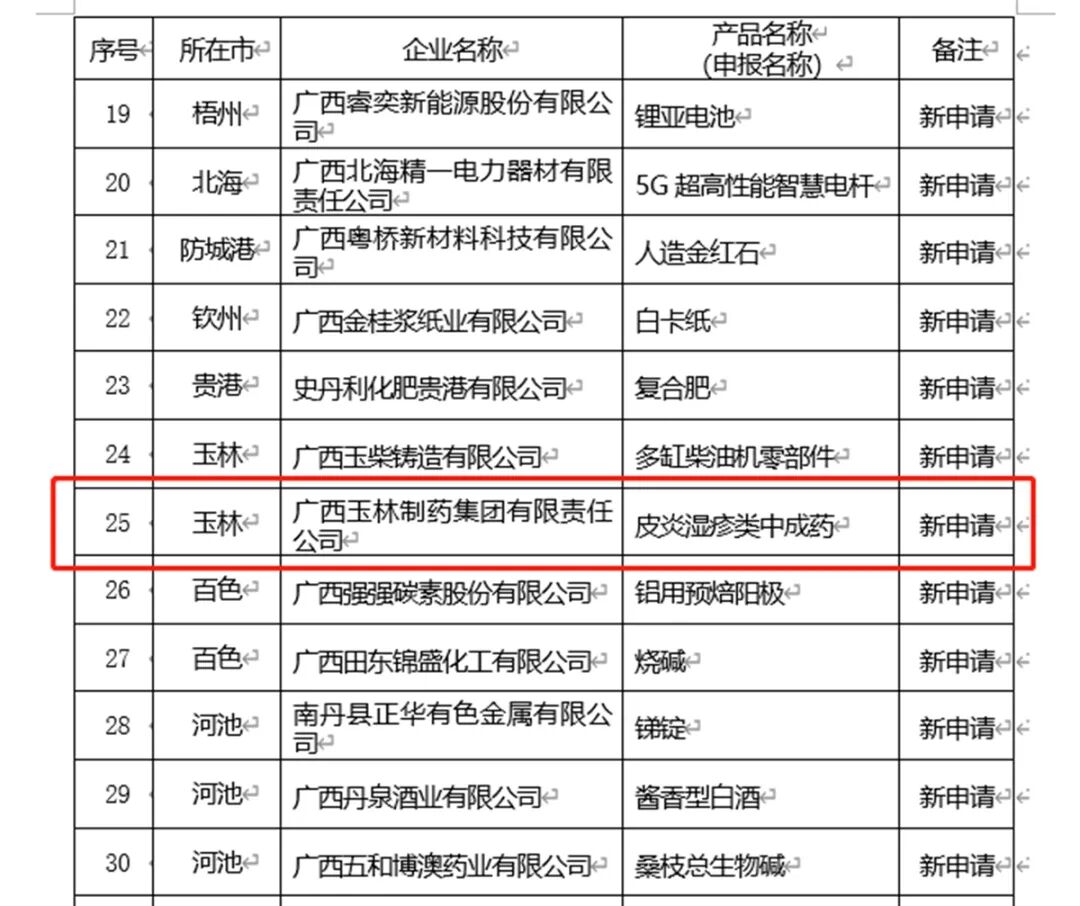 12月2日,广西壮族自治区工业和信息化厅颁布文件(桂工信政法[2024]913号),正式公布了2024年广西壮族自治区制造业单项冠军企业名单。经过严格的评审,凭借在皮炎湿疹类中成药领域的专注度、工艺技术水平、市场规模,玉林制药成功入选广西壮族自治区制造业单项冠军。这是玉林制药继获评自治区“专精特新中小企业”之后在细分领域方面取得的又一成果。 ![]() ![]() “广西壮族自治区制造业单项冠军”旨在表彰长期专注于制造业特定细分领域,生产技术或工艺水平国内先进,单项产品(生产性服务)市场占有率位居国内或广西行业前列的企业。遴选重点评估企业专业发展、市场竞争、自主创新、经营管理等多项指标,鼓励企业树立“十年磨一剑”的精神,聚焦细分领域,深耕细作。 随着全民生活水平的提升以及健康意识的增强,人们对皮肤健康的关注度逐渐提高,皮炎湿疹类中成药的需求也在逐步增长。玉林®湿毒清胶囊是在经典验方的基础上由玉林制药原研上市,自1984年出口海外,销往香港、马来西亚、新加坡、印尼等地,深受海外侨胞的认可,至1990年获得广西壮族自治区卫生厅批准生产。玉林®湿毒清胶囊养血润肤,祛风止痒,用于血虚风燥所致的风瘙痒,症见皮肤干燥、脱屑、瘙痒,伴有抓痕、血痂、色素沉着;皮肤瘙痒症见上述证候者;曾获广西名牌产品、中国医药品牌榜获奖品牌、广西医药科技进步奖、广西名优工业产品等荣誉。 据了解,玉林市获评“2024年广西壮族自治区制造业单项冠军”的企业仅两家。玉林制药获此殊荣是对企业技术实力和创新能力的肯定,也是对企业持续发展潜力和市场前景的认可。玉林制药将以此为契机,持续推进技术和产品创新,紧贴市场变化需求,在皮炎湿疹类中成药领域深耕细作,不断提高市场规模,为更多的医药患者提供优质的产品和服务,助力企业高质量发展。