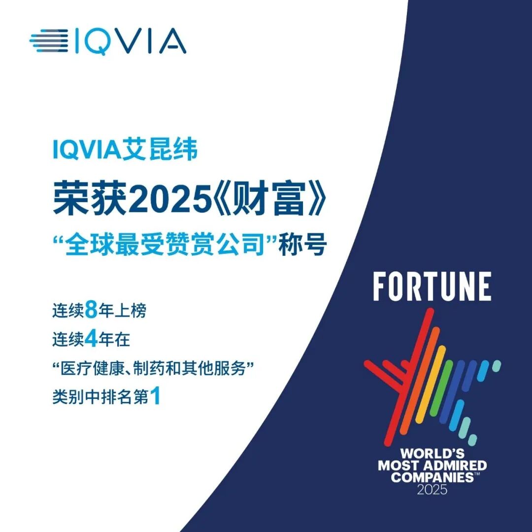 近日,《财富》2025年“全球最受赞赏公司”(World's Most Admired Companies)榜单发布,IQVIA艾昆纬再次荣膺全球最受赞赏公司之一,连续第8年蝉联此殊荣。