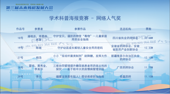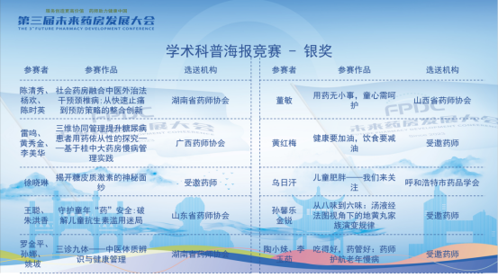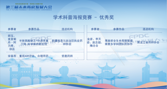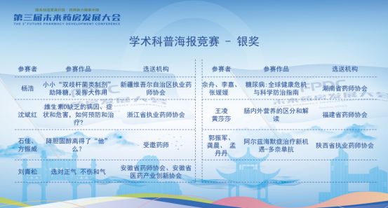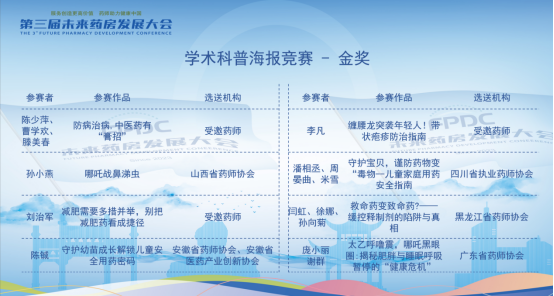 第三届未来药房发展大会|药师职场技能比赛成为大会亮点![]() 6月20日至22日,由中国非处方药物协会、湖南省药师协会联合主办、25个省市药师协会、学会协办的“第三届未来药房发展大会”在湖南长沙盛大举行。 ![]() 本次大会秉持"服务创造更高价值,药师助力健康中国"的使命,以“智能提速・生态协同”为主题,汇聚了众多专家、学者及行业从业者,共同探索未来药房的创新发展之路。其中,“药师职场技能比赛” 作为大会的一大亮点,再次成为大会的焦点。 ![]() 大会针对参会药师设置的“药师职场技能比赛”包含“药师用药指导情景模拟赛” “药师科普演讲赛” ,以及新增设的 “学术科普海报竞赛”,从不同维度考验药师的专业素养、沟通能力、创新思维和科普能力。 在“药师用药指导情景模拟赛” 中,两位参赛药师在比赛情景选择范围进行创作,模拟真实的患者用药咨询场景,通过角色扮演,展现其在专业知识运用、沟通技巧、问题解决等方面的能力,充分体现专业素养,避免过度表演。而 “药师科普演讲赛” 中,参赛药师需以通俗易懂的语言,围绕合理用药相关主题进行科普演讲,旨在提升公众对合理用药的认知水平,同时考验药师的知识转化与传播能力。此次新增设的 “学术科普海报竞赛”,则为药师们提供了一个通过视觉创意传播药学知识的平台,通过海报展现药师们在学术科普方面的创新成果和视觉表达能力。此次海报竞赛反响热烈,34幅入围作品在网络投票平台斩获累计75万投票,平台访问量高达14.4万人次。 ![]() 经过激烈角逐,专家评委组最终评选出金奖、银奖和优秀奖得主。 药师用药指导情景模拟赛金奖名单(名单排名不分先后) ![]() 陈清秀、杨欢 工作单位:养天和大药房股份有限公司 选送单位:湖南省药师协会 参赛题目:拉肚子吃药顺序错 = 白吃? 胡玉、麦吾菊丹・阿力甫 工作单位:新疆医科大学第六附属医院 选送单位:新疆维吾尔自治区执业药师协会 参赛题目:水蛭吸血治血栓?看药师如何把关 厉芬、林黎 工作单位:湖州市机关事务中心医务室、湖州市食品药品检验研究院 选送单位:浙江省执业药师协会 参赛题目:“骨” 舞人心 张文静、王皎皎 工作单位:内蒙古自治区人民医院 选送单位:呼和浩特市药品学会 参赛题目:别让脆弱的骨头偷走你的健康 舒文琳、张红文 工作单位:厦门市中医院 选送单位:福建省药师协会 参赛题目:“药” 无差错:精准指导护健康 周晏曲、米雪 工作单位:四川大学华西第二医院 选送单位:四川省执业药师协会 参赛题目:孕中苗事:药师“码” 清楚 潘丽娟、王琳 工作单位:赤峰市第二医院 选送单位:内蒙古药师协会 参赛题目:骨疏自救队—— 药不能 “酥” 雷鸣、李美华 工作单位:广西桂中大药房连锁有限责任公司 选送单位:广西药师协会 参赛题目:糖尿病患者的用药依从性教育 药师用药指导情景模拟赛银奖名单(名单排名不分先后) 王晓燕、许小燕 工作单位:上海华氏大药房有限公司 选送单位:上海市执业药师协会 参赛题目:药不能“停” 彭毅平、朱洪香 工作单位:山东立健药店连锁有限公司 选送单位:山东省药师协会 参赛题目:牙痛暗藏玄机:药师教你从疼痛位置破解病因密码 汤婷丽、谭秀川 工作单位:海南医科大学第二附属医院 选送单位:海南省药师协会 参赛题目:骨头“变脆”,结石又来 “捣乱”? 李亚玲、魏雪鸿 工作单位:南京医药合肥大药房连锁有限公司 选送单位:安徽省药师协会、安徽省医药产业创新协会 参赛题目:莫让孝心变闹心 王霖玲、邹露萍 工作单位:国药太极重庆桐君阁大药房连锁有限责任公司 选送单位:重庆市药师协会 参赛题目:药盒外的温度:用“听得懂的话” 守护骨骼健康 董萱、刘晓敏 工作单位:陕西省人民医院 选送单位:陕西省执业药师协会 参赛题目:骨质疏松患者 VD 科学使用 金彦、李天姿 工作单位:首都医科大学附属北京儿童医院黑龙江医院 选送单位:黑龙江省药师协会 参赛题目:荨麻疹患儿家长药物咨询 刘云、周智慧 工作单位:益丰大药房连锁股份有限公司 选送单位:湖北省执业药师协会 参赛题目:安心哺乳、安全用药、守护母婴健康 曹树英、曹桂红 工作单位:赤峰老百姓大药房连锁有限公司 选送单位:赤峰药师协会 参赛题目:衣服搭配的不对,最多就是丑,药物搭配的不对呢? 庞小丽、谢群 工作单位:大参林医药集团股份有限公司 选送单位:广东省药师协会 参赛题目:换药?不换药?药师来指导 马小静、董敏 工作单位:中铁十七局医院 选送单位:山西省药师协会 参赛题目:药学门诊用药咨询点滴事 毛娜、邓元娇 工作单位:苏州雷允上国药连锁总店有限公司 选送单位:雷允上药业集团有限公司 参赛题目:孕妇生病只能硬抗? 江智春、邓玮 工作单位:北京东升天保堂连锁药店有限公司 选送单位:北京药师协会 参赛题目:牙疼患者购药咨询情景演练文案 刘加明、李亿丹 工作单位:无锡汇华强盛医药连锁有限公司 选送单位:江苏省执业药师协会 参赛题目:中医理论为基础,中成药、活菌制剂联合用药 商华、赵伟 工作单位:天津医药集团津一堂连锁股份有限公司 选送单位:津药达仁堂集团 参赛题目:骨质疏松治疗咨询 姚坡、罗金平 工作单位:湖南千金大药房连锁有限公司 选送单位:湖南省药师协会 参赛题目:中医感冒知几何 药师科普演讲赛金奖名单(名单排