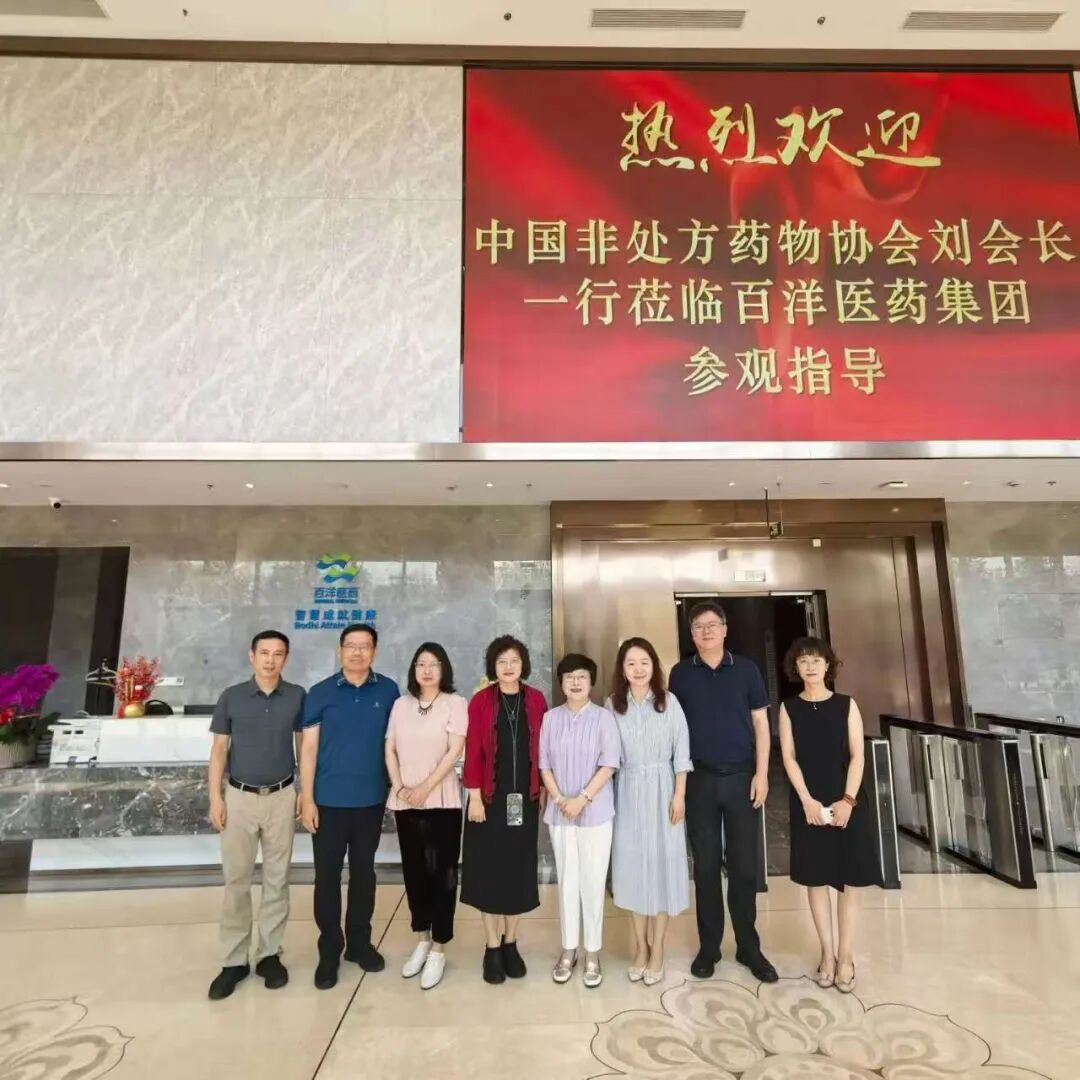 2025年8月11日,中国非处方药物协会会长刘沛率汪鳌副会长、郑博秘书长等一行赴百洋医药集团(北京)总部走访交流。百洋医药集团副总裁张圆及品牌市场部相关负责人热情接待。